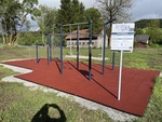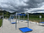 - Outdoor-Fitnessgeräte – im schattigen Uferbereich mit Blick auf den See