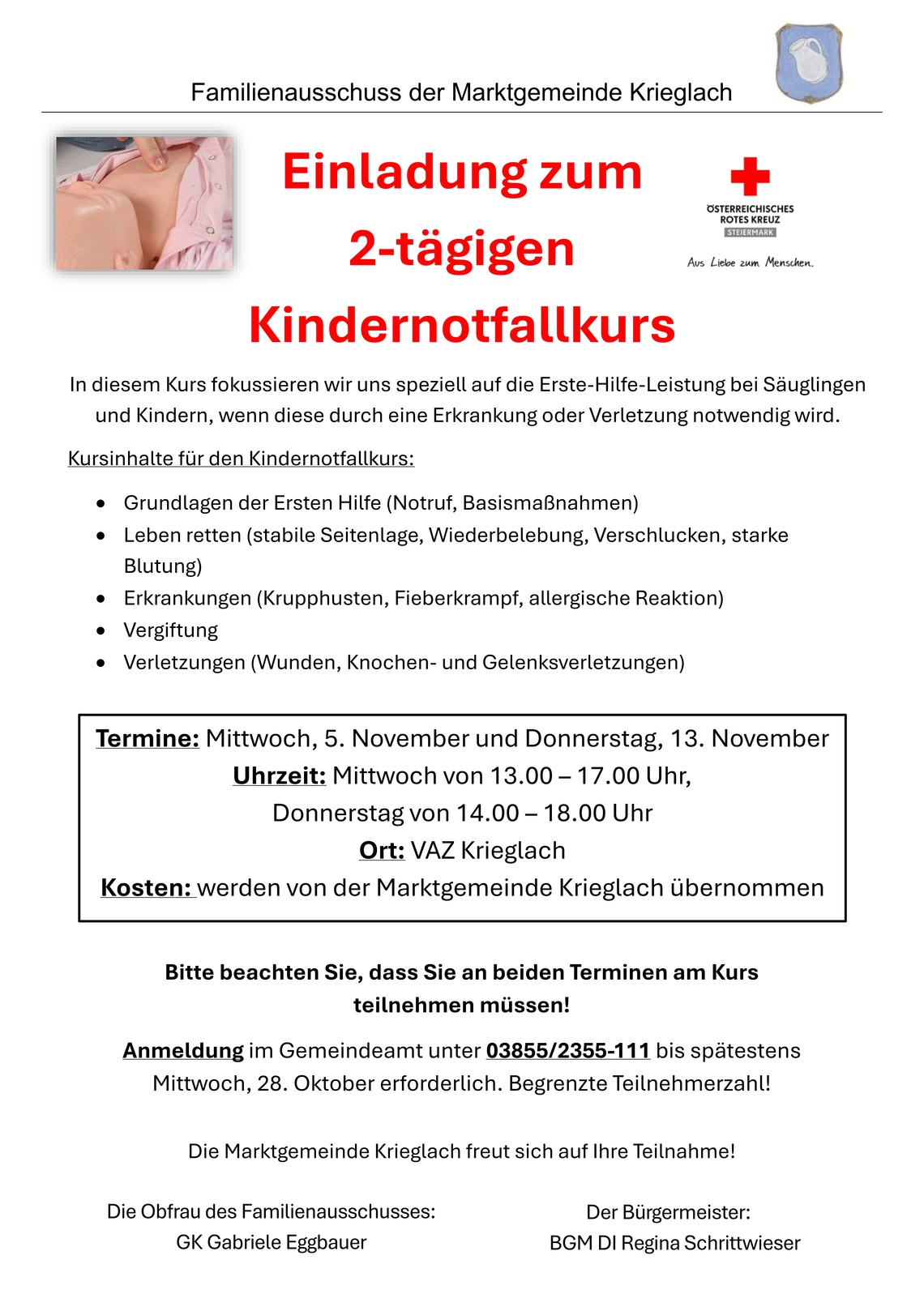 Am 11. Juli 1929 durfte sich Krieglach zum ersten Mal als Marktgemeinde ausgeben. Das Marktwappen zeigt einen weißen Krug auf dunkelblauem Grund.
