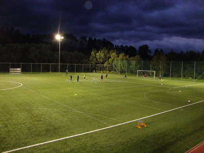 Als Kunstrasen kommt ein FIFA-zertifiziertes Produkt der überarbeiteten 3. Generation zum Einsatz und besitzt zudem eine automatische Bewässerungsanlage sowie eine moderne Flutlichtanlage (Platzausleuchtung durchgehend min. 300 Lux).