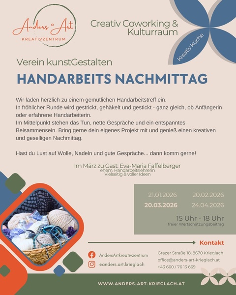 TitelEltern-Kind-Backen - "Alles rund um Ostern"DatumFreitag, 20.03.2026Uhrzeit 15.00 Uhr VeranstalterFamilienausschuss der Marktgemeinde Krieglach OrtSchulküche der MS Krieglach[mehr]